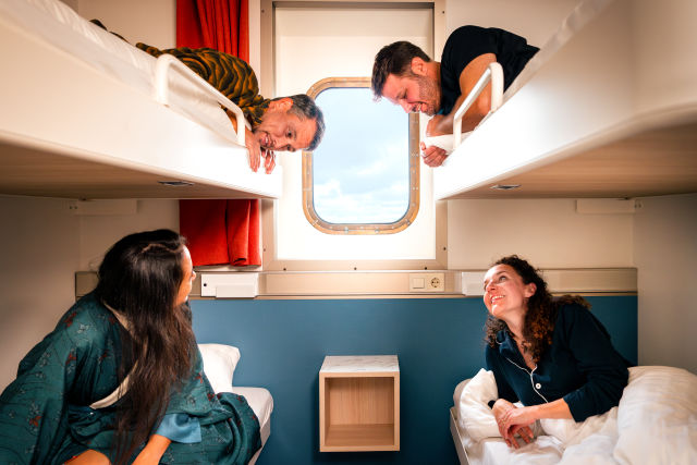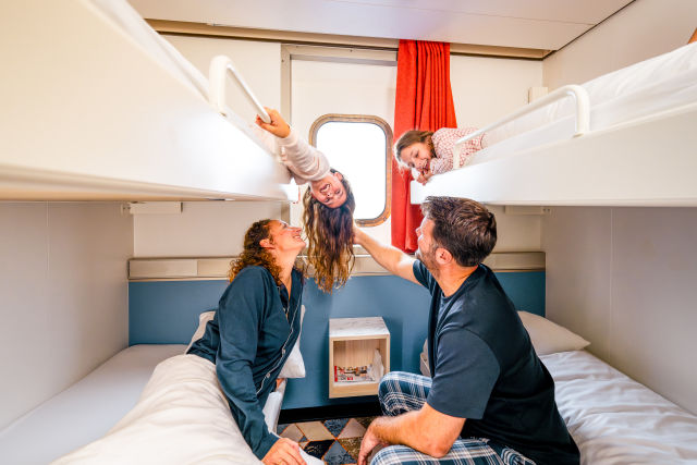 Two nights in a 2 or 4-bed private cabin aboard a DFDS ship (one night on your way to Amsterdam, the other one for the return leg)