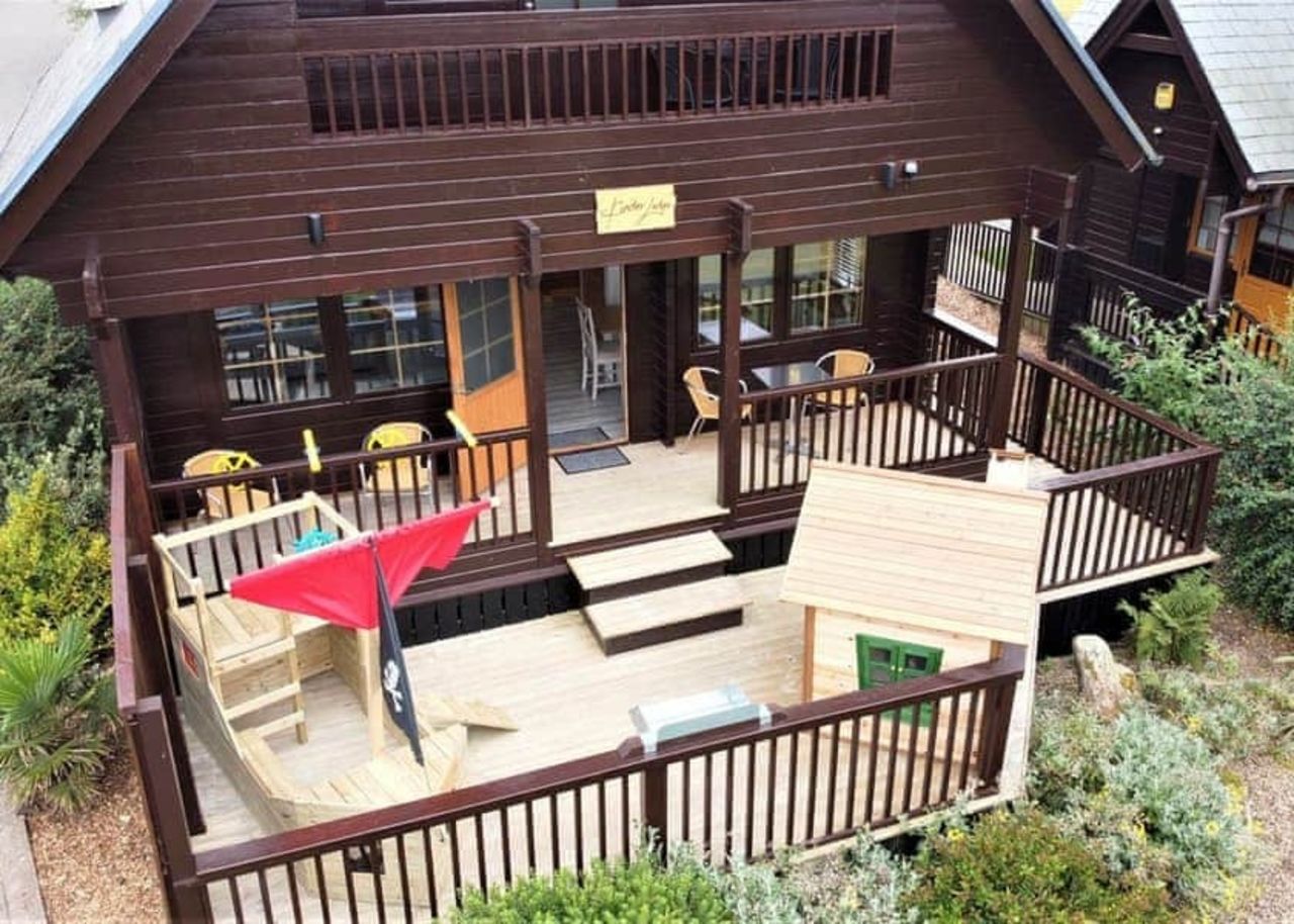 The lodges are at the Gwel an Mor holiday park in Portreath. They include family-friendly features such as a pirate-ship play area on the outdoor decking.