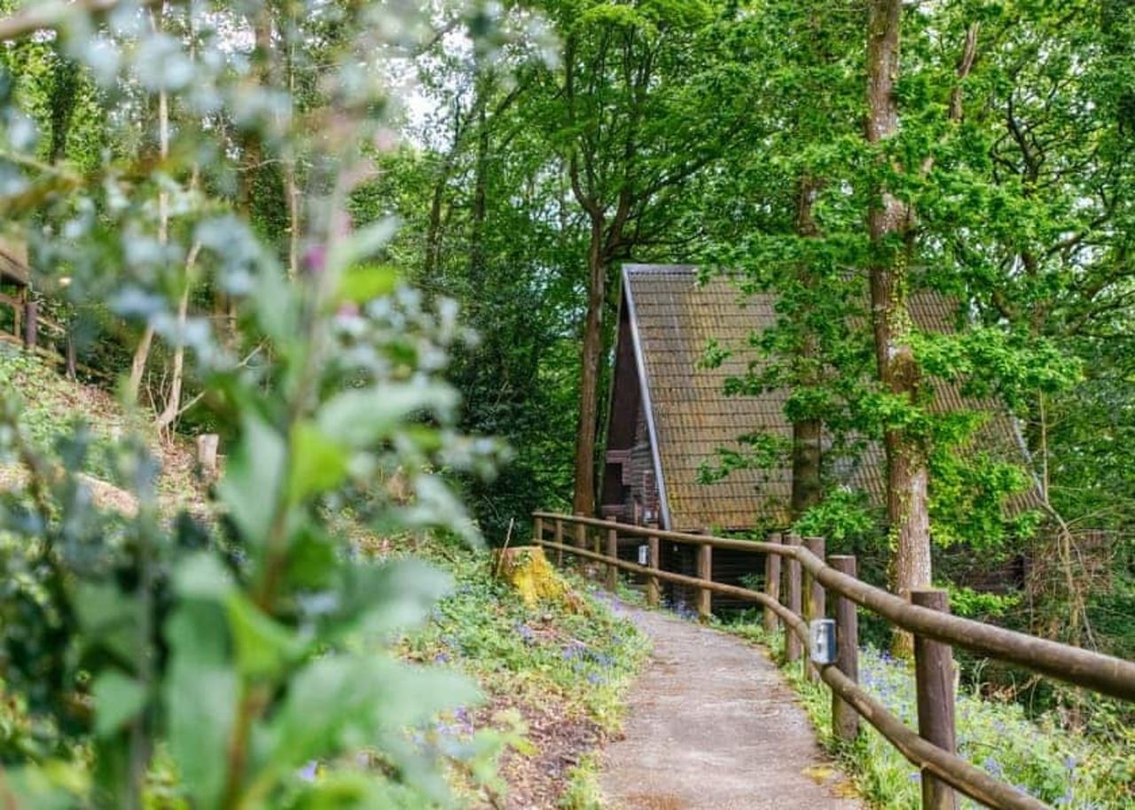 The lodge is at Finlake Resort and Spa in South Devon; it has three bedrooms, a kitchen and a balcony overlooking the countryside. The resort is on a 130-acre country estate with pools, a spa, a bar and a restaurant.