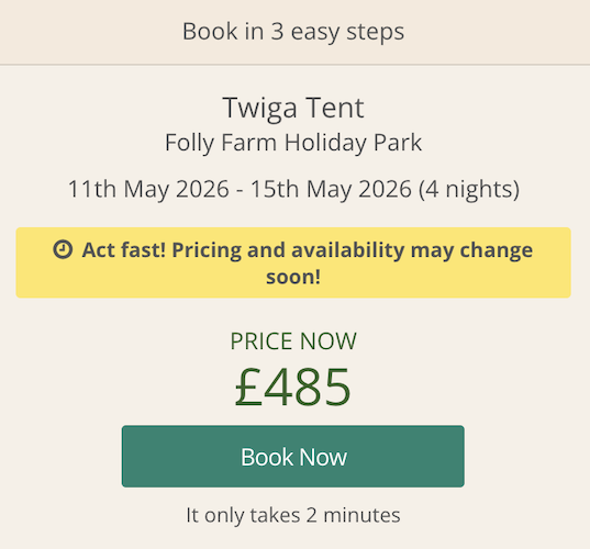 Read more about Folly Farm Holiday ParkPirates, we've found a great price for spring 2026 getaway staying in a safari tent for up to 6 people at Folly Farm Holiday Park in South Wales from £485 for four nights. That's £20 per person, per night! Not too shabby for a unique stay like this.