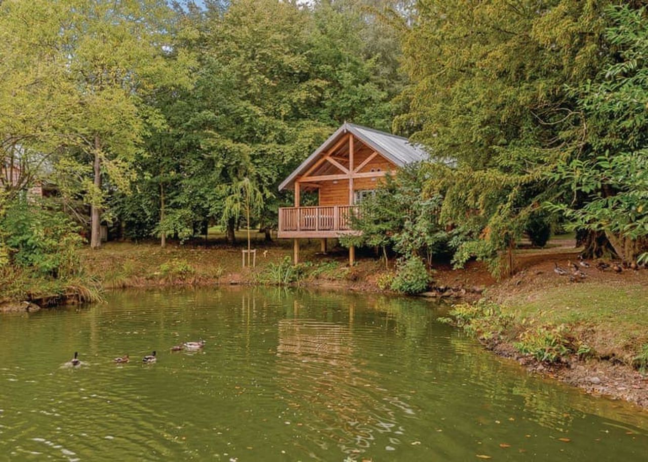 The chalet-style lodge features a balcony that sits over the adjourning pond and even has a hot tub -- some might even say it's a bit like the Maldives! Sort of. Ish.