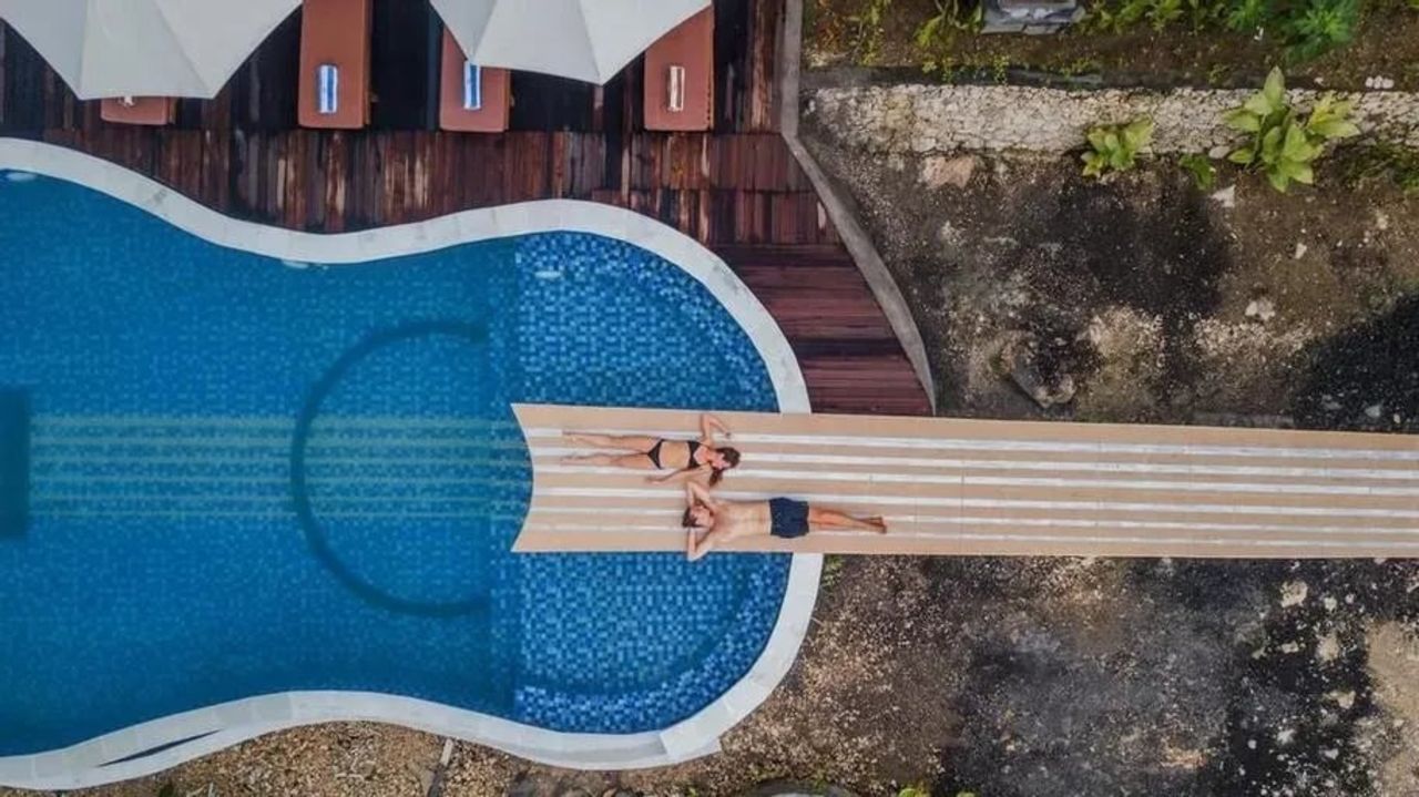 You will stay in the Horizon Nusa Penida, and have use of the amazing guitar-shaped swimming pool at Kabeh Jati Garden Villa. Or you can choose to stay here from £22 per night.