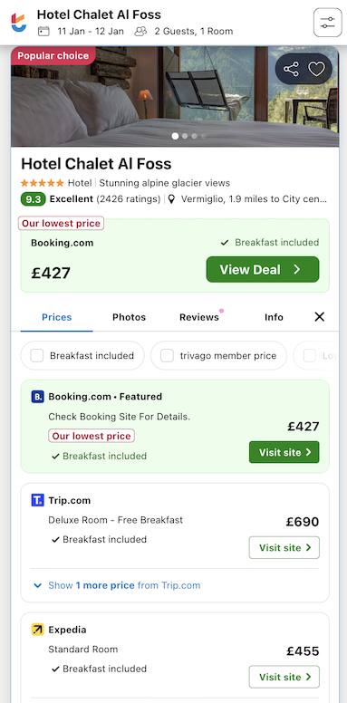 We’re sending you over to Trivago, which searches loads of sites to find you the cheapest price out there.