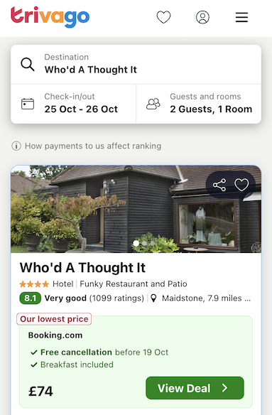 Pirates, check out this awesome hotel we've found in Kent (near Maidstone) with rooms from £74, including Saturday nights.