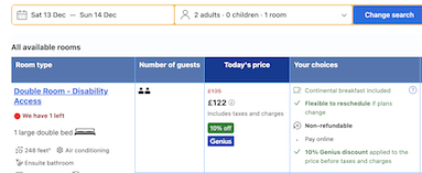 Make sure to click through and log into your booking.com account to see the advertised prices.