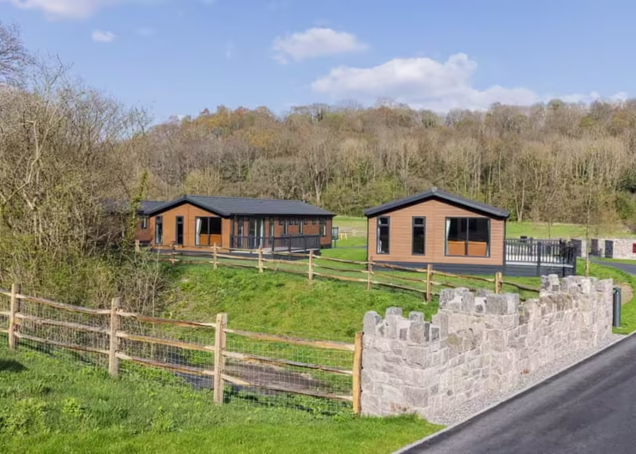 The lodge is part of Plas Isaf Lodge Restreat in Caerwys, Flintshire. The resort sits just outside the charming village, and offers visitors a peaceful escape with stunning views. Meanwhile, the lodges themselves are stunning: clean lines and modern interiors that feel like a home from home.