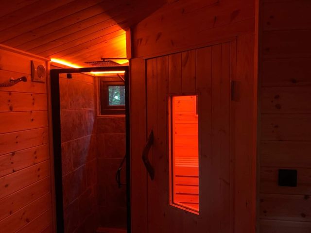 Private hot tub and sauna