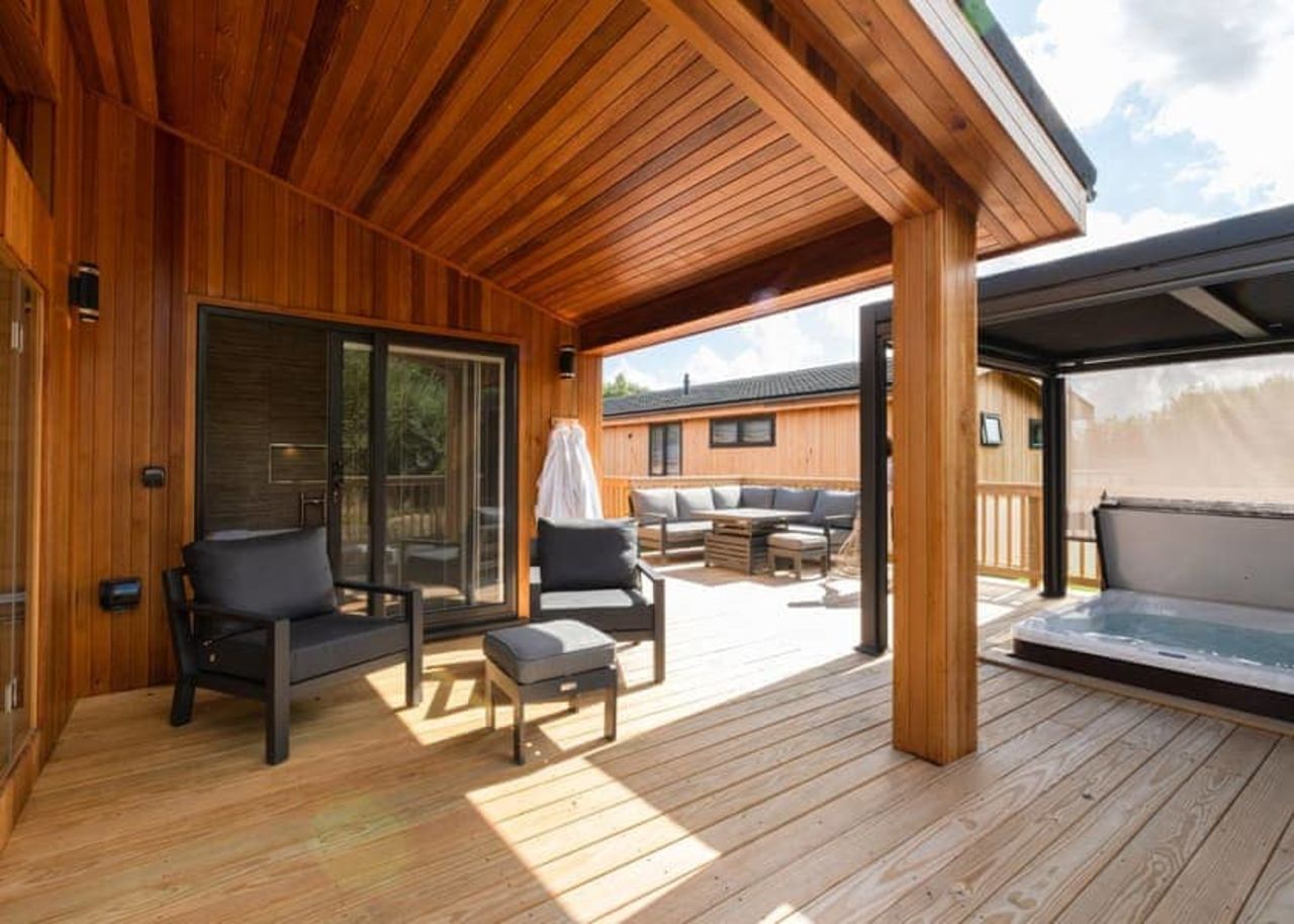 The modern lodge has a private hot tub and sauna, a huge outdoor deck, a freestanding bath and a big openplan living space. Seriously, this place is perfect for a romantic getaway.