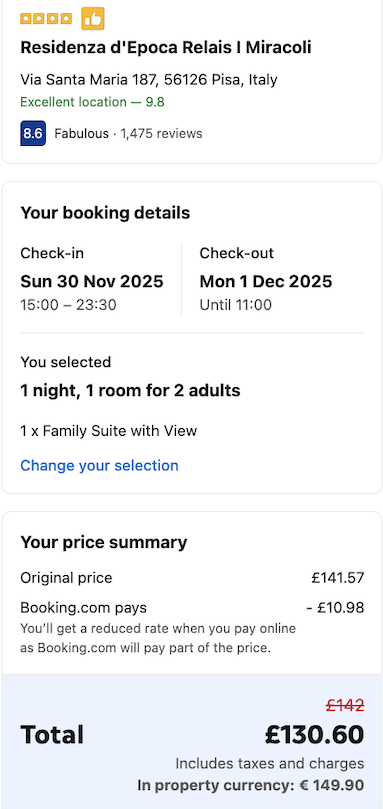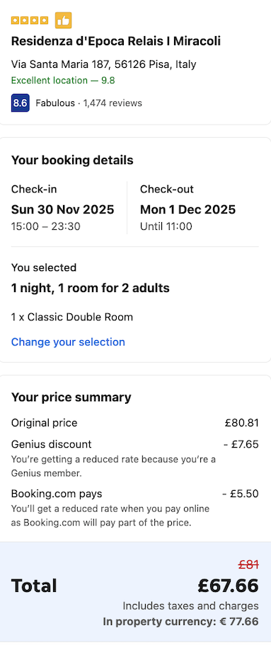 You’re basically living on top of the Duomo/Baptistery/Tower trio — zero faff, maximum sightseeing.