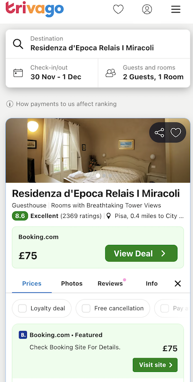 We're linking through to Trivago, so you'll always see the providers with the best price whenever you click.
