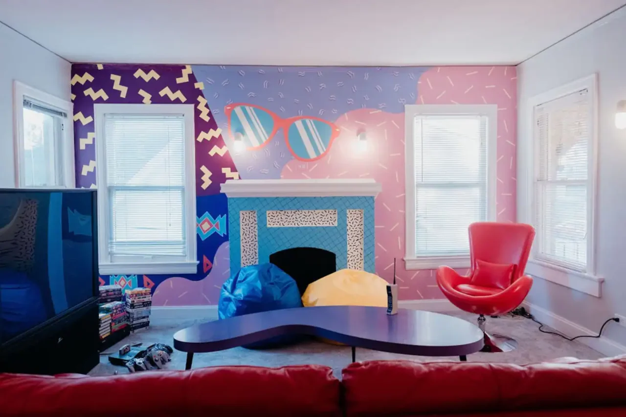 The Airbnb is highly inspired by Saved by the Bell, which you can clearly see with the living room taking you through a visual journey of the opening credits for the show.