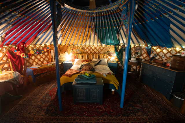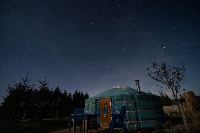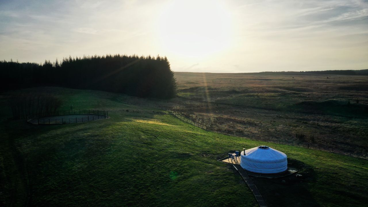 This Mongolian yurt in Scotland has stunning views, with the sunset in one direction & the peaks of the Southern Uplands the other way.