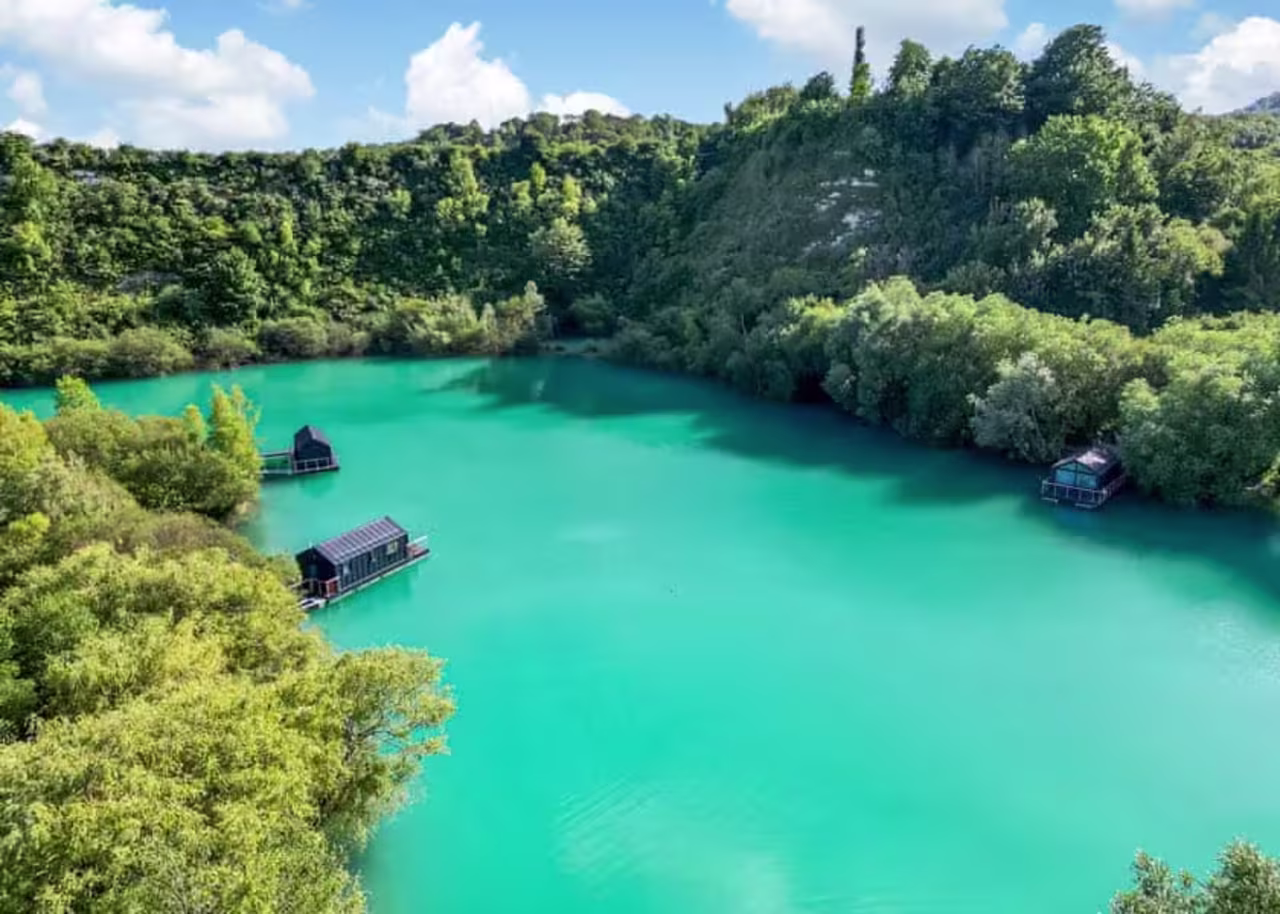 The lodge in question is part of St Andrews Lakes, a secluded lake boasting floating lodges and a host of water-based activities. The two-bedroom lodge includes a room with a double bed, plus another with a bunk bed then a sofa bed for a third person - so ideal for a group of 4 friends or a large family.