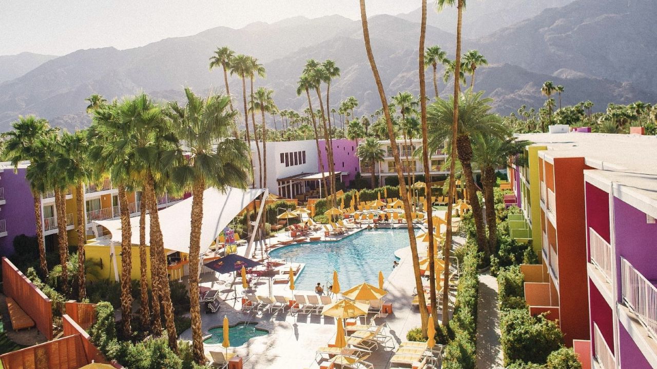 The resort runs a free transfer service to Palm Springs' downtown area and has an outdoor pool, an on-site restaurant, a bar. It also has yoga weekends and parties with DJs on the weekends in summer ๐ชฉ