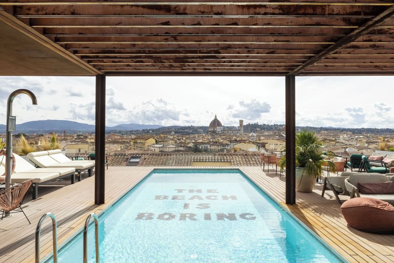The Social Hub Florence Lavagnini is a 4⭐️ hotel with rooftop pool, co-working areas, games such as table football, gym, and rooftop swimming pool with rooftop bar. 🍹😍