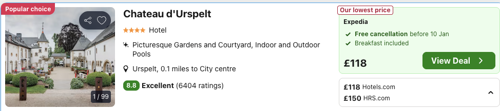 A great deal considering prices can climb to well over £200 for stays here.