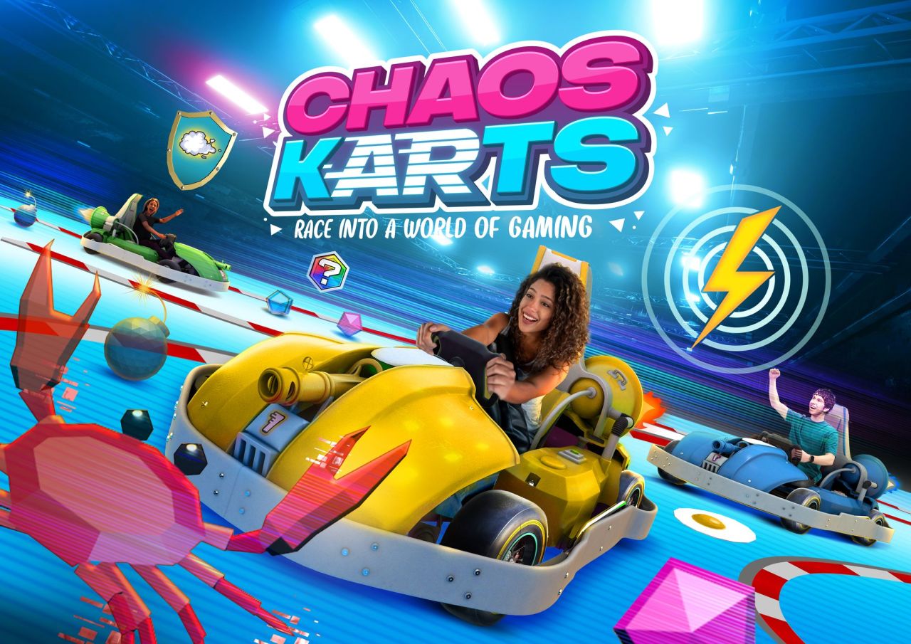 Chaos Karts uses state-of-the-art technology to produce real life sensations and reactions in a virtual world while competing against your friends to win points and ultimately the race.