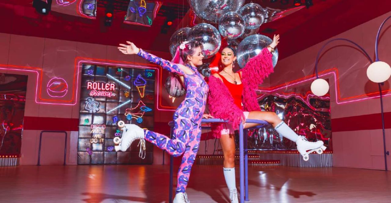 Shiny pop-up experience with funky bar 🛼 roller skate rental included