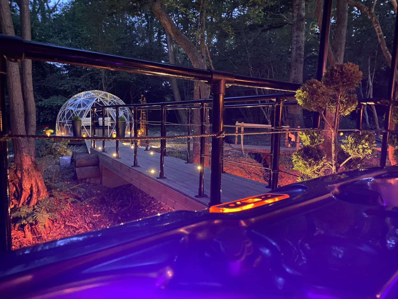 The igloo (Geodesic Dome) is kitted out for you to have somewhere to go to relax under the stars, there is a sun lounger, side tables and a selection of magazines, leave your phone inside and really get away from it all for a bit.