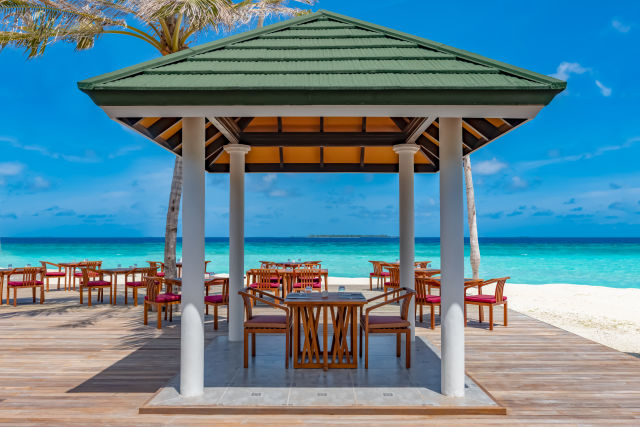 You’ll enjoy seven nights at the luxurious 5-star Maldives resort with return flights, luggage, seaplane transfers, and an upgraded stay in a lagoon villa with a private pool and slide, all on a 24-hour all-inclusive basis.
