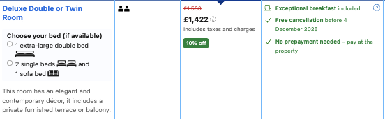 Price is based on 2 sharing (£913 (including booking fee) / 2 = £456.50 per person)