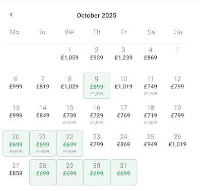 This package can easily cost over £1k in summer, but by travelling in October, you’ll be saving a tidy sum. 👀