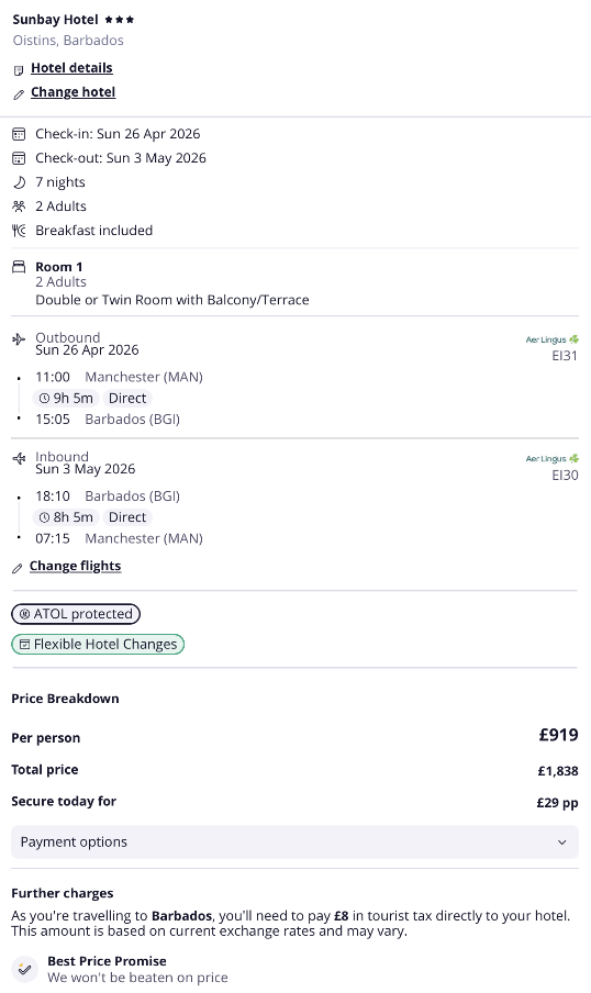Pirates, we've found a week-long holiday from Manchester to Barbados from £919 – direct flights, hotel and breakfast included! 🌴☀️