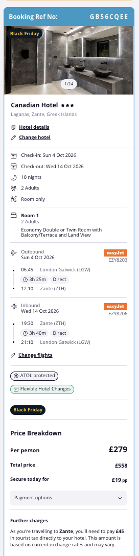 Pirates, we've found a bargain 10-night holiday to Zante from ยฃ279 for Autumn next year.