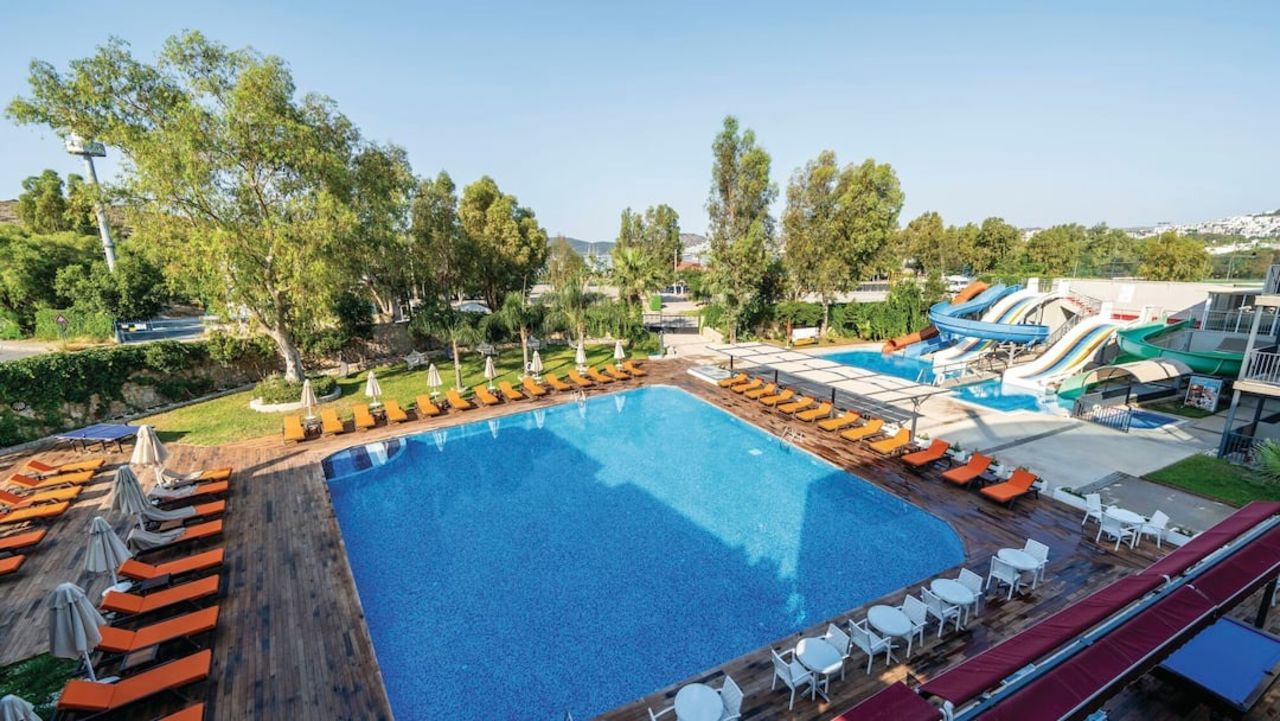 You’ll be right in the heart of the action in Gümbet, with the sandy beach just a 100-metre stroll away and two outdoor pools (complete with waterslides) waiting for you back at the resort.