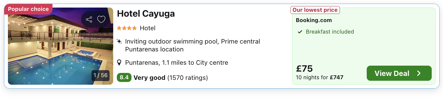 Don't forget to book your flightWe’ve spotted some fantastic-value flights from London to San José, Costa Rica this February, and paired them with a well-rated 4-star beach hotel with breakfast included — perfect for soaking up some winter sun at a destination that usually comes with a heftier price tag. 🌴☀️