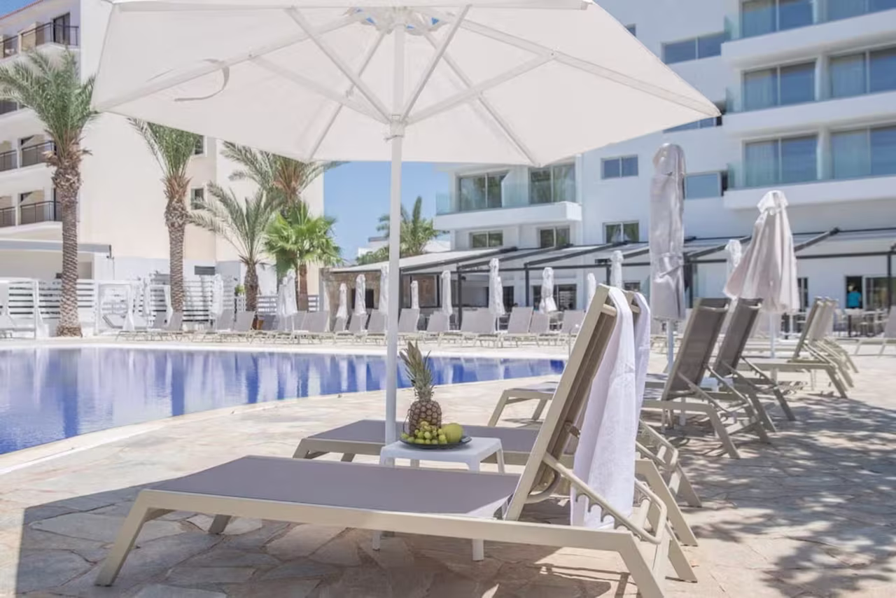 You'll stay at Bohemian Gardens, a 4-star hotel in Pernera with an outdoor pool, sun terrace and gym. It’s a short walk to Marlita Beach and around 15 minutes on foot to the heart of Protaras. Breakfast and dinner are included.