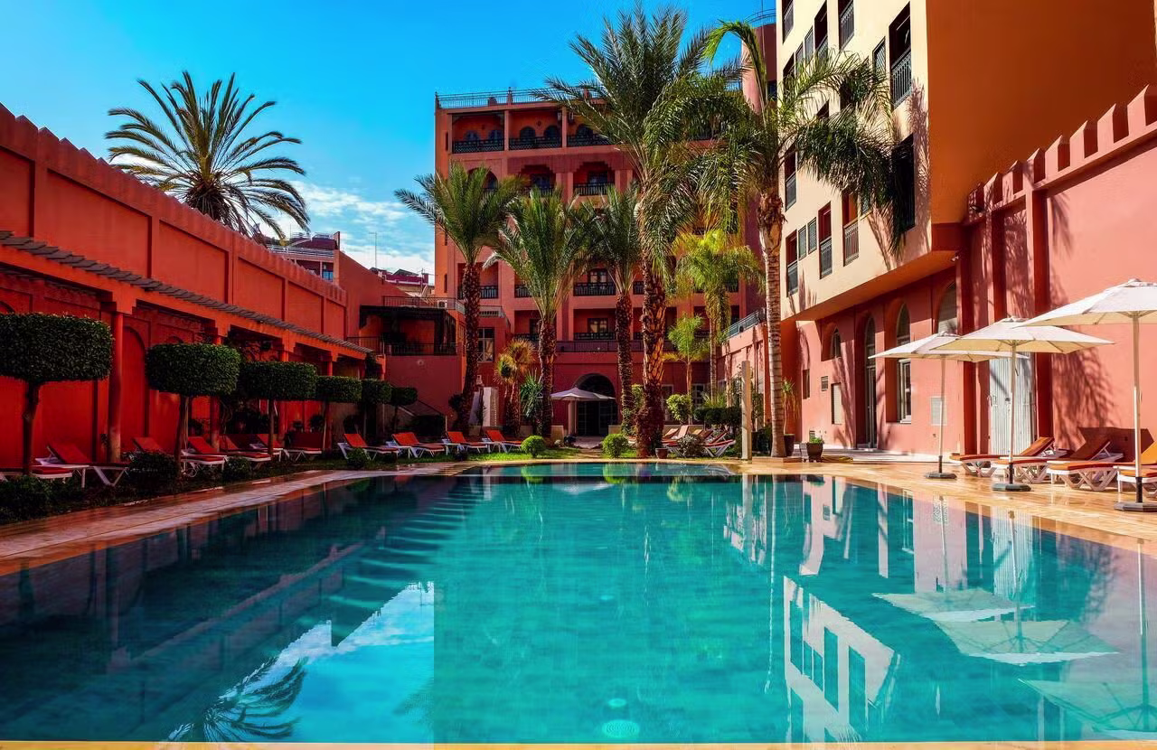 You'll stay at the Diwane Hotel, which has a 4 out of 5 rating on Tripadvisor. It's not quite in the centre, but you can get to the Medina in about 12 minutes by taxi.