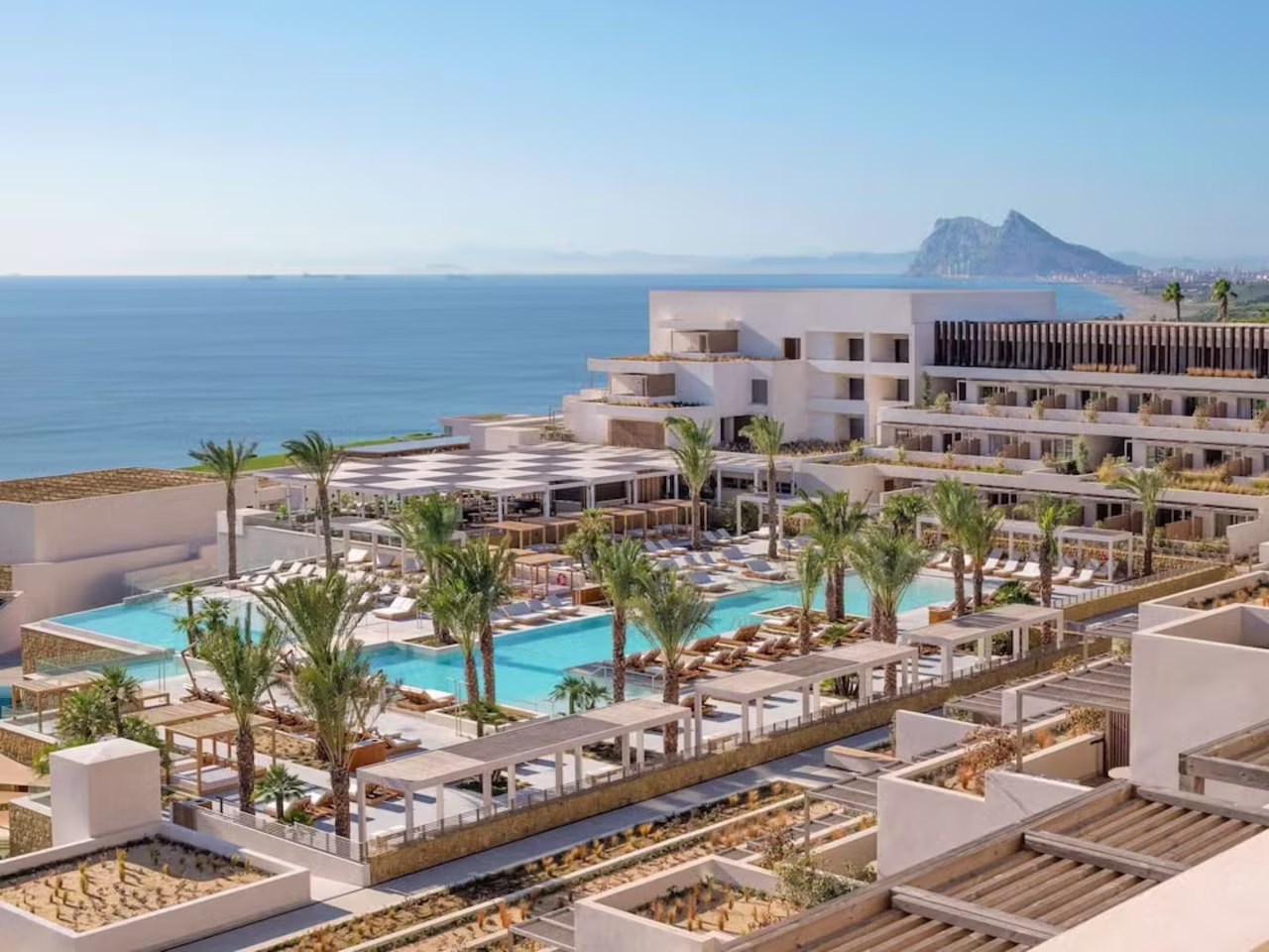 The infinity pool overlooks the Mediterranean, and on a clear day, you can see the Rock of Gibraltar and the coast of Africa.