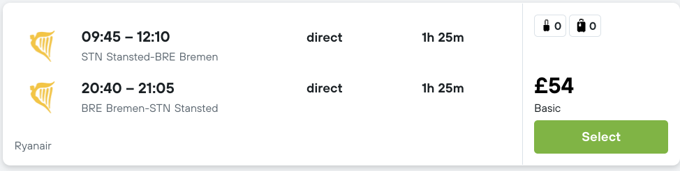 2 nights at the 3-star Ibis Budget Bremen City Center = £105 / 2 people = £52.50 per person