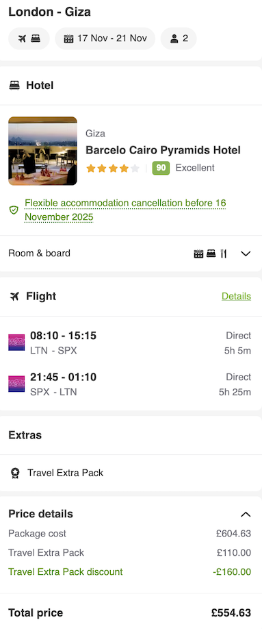 To put this price into perspective, you might find similar trips at a lower price, but they usually include 2- or 3-star hotels. Packages that include hotels of this calibre go around £300-£400 at this time of the year.