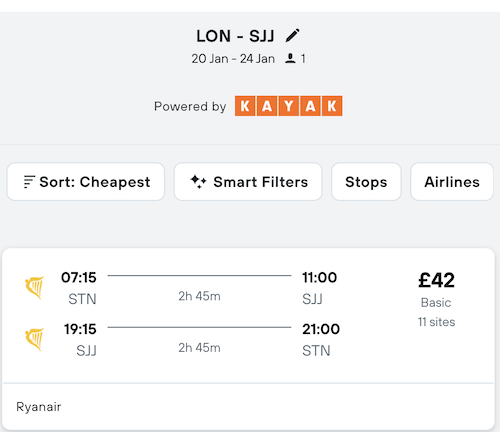 Direct flights = £42 per person