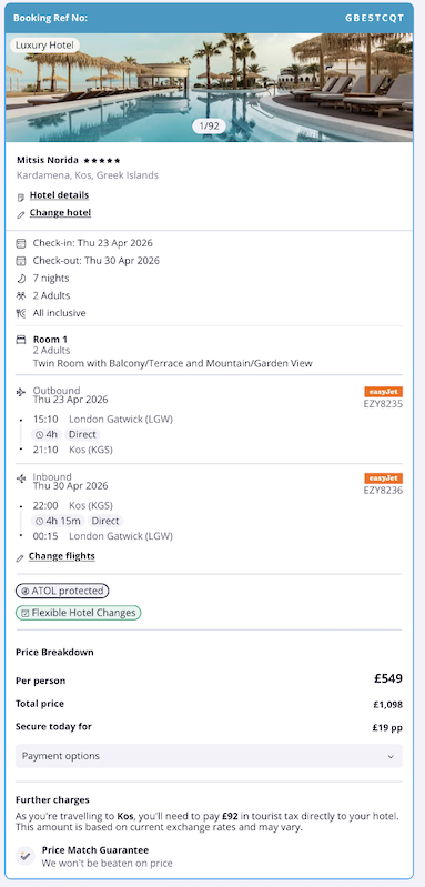 Stay at a 5-star top-rated all-inclusive resort in Kos for a week, with return flights included, all from £549. Going only a few weeks later can cost over £100 more, so worth considering the early-bird dates we've found.