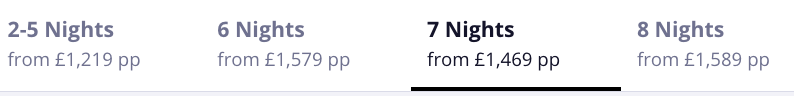 The lead price is available in December, when 7 nights are cheaper than 6! Plus, we've found dates that save you £300 per person.