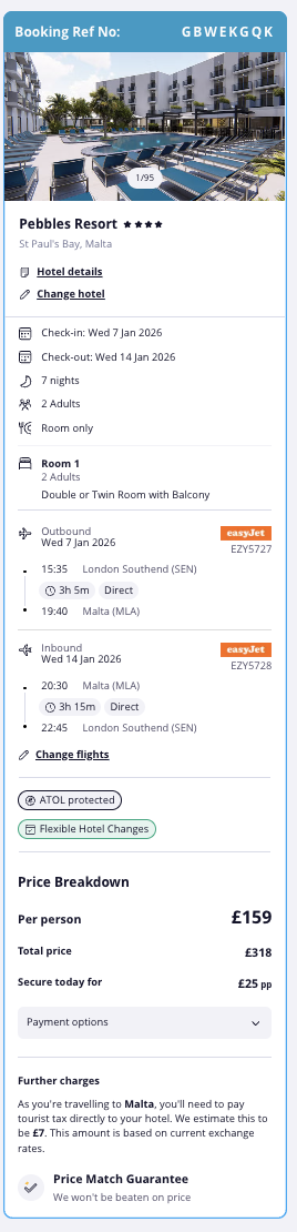 This early bird offer makes January 2026 departures cheaper than any available dates in 2025 - excellent value for a week in Malta.