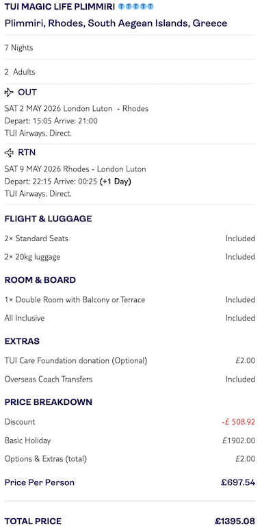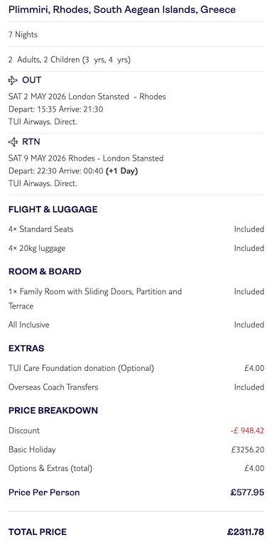 💸 Prices start from £698 per person for couples, and from £578 per person for families of four.