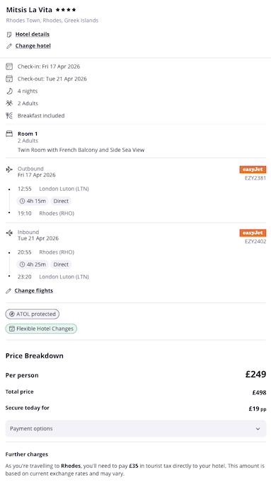 Weโve found a 4-night stay over a weekend at the 4โญ Mitsis La Vita, including flights and breakfast, for under ยฃ250 in April, and yep, thatโs even cheaper than March dates. More sun, less spend. Win. โ๏ธ
