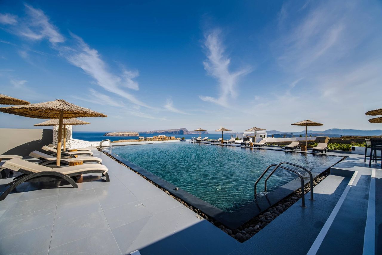 You will stay in the highly rated 3⭐️ Serenita Luxury Suites in Akrotiri in Santorini. The hotel offers indoor and outdoor swimming pools, restaurant, bar and cocktail lounge. 🍹