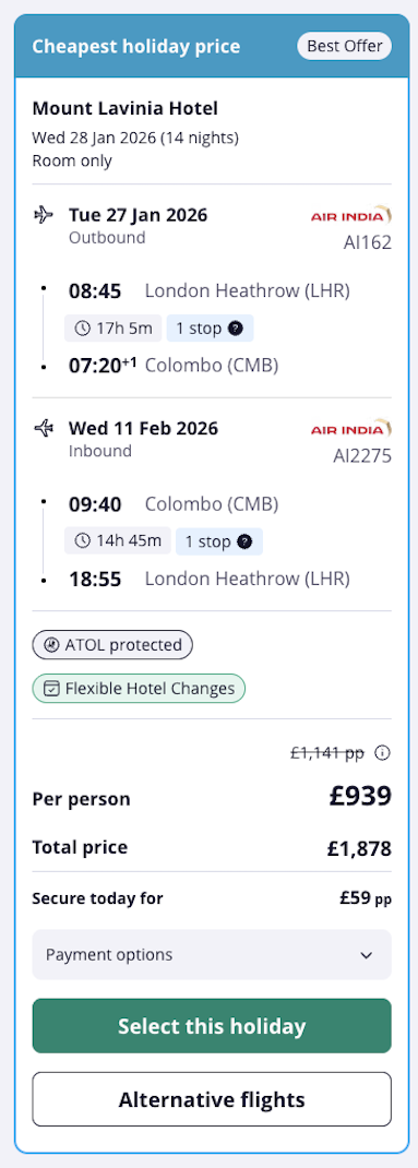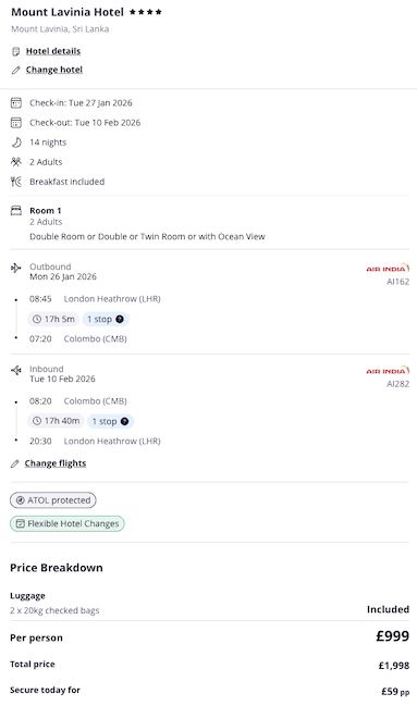We’ve found a fab deal to Sri Lanka: 2 weeks from £999, with flights and a stay at the 4-star Mount Lavinia Hotel.