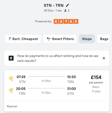 Flights = £154 per person