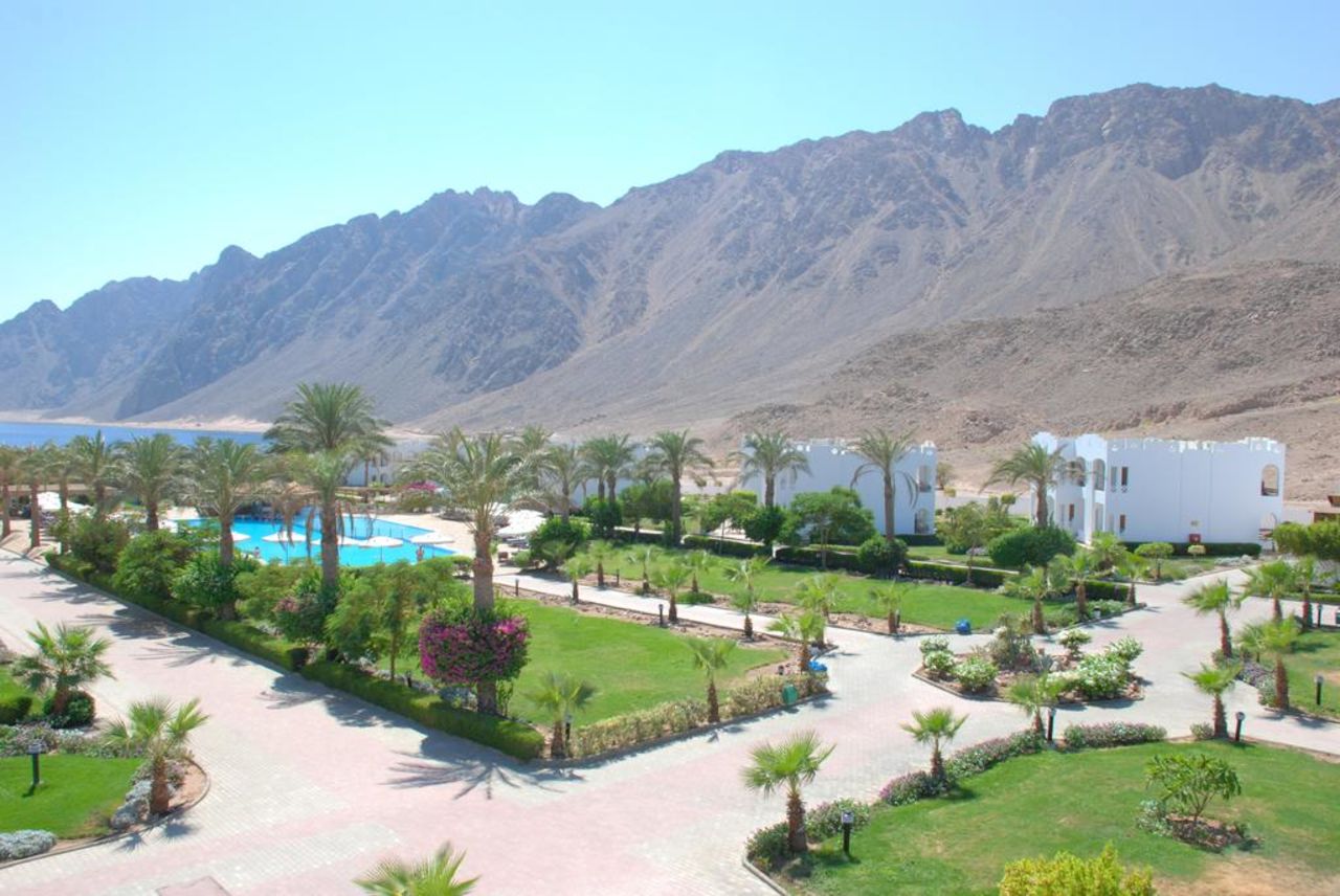 The hotel, Happy Life Village, is located by the shores of the Red Sea in Dahab. Dubbed by CNN as 'the perfect Red Sea resort town', this lesser-known spot offers scenic landscapes (just look at the mountains next to the hotel) and an artifical reef which houses an underwater museum.