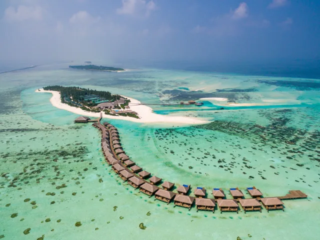 You'll be staying at the luxurious Cocoon Maldives, a chic 5-star design hotel that overlooks a lagoon in the Lhaviyani Atoll. It's a 30-minute seaplane transfer from the international airport.