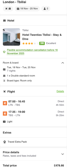 Go solo from £322Ahoy, Pirates! We've spotted a cracking deal to Tbilisi, Georgia, and it's a real steal.