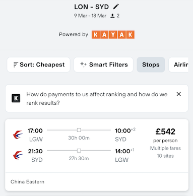 Pirates, we came across a great deal on flights to Sydney for 2026! You'll head off in March from London with China Eastern Airlines. Prices start from £542, and that includes carry-on and checked baggage!