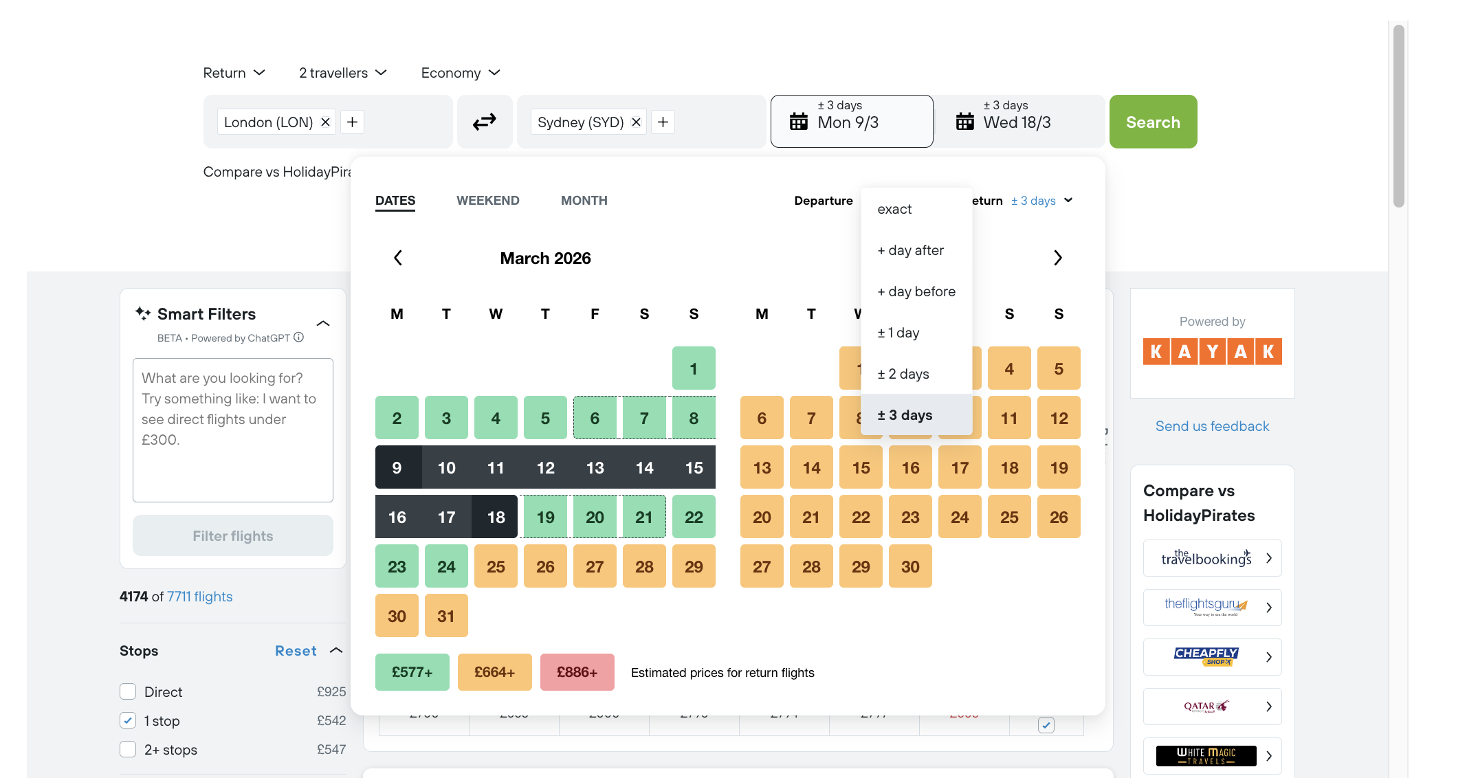 Find more dates by adjusting the dates on Kayak to +-3 days: